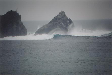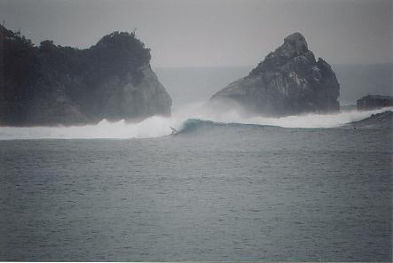 2004.4.14 rainy/cloudy Swell: SW/S Wind: Offshore all day! I was super exhausted by yesterday's surfing. Woke up at 10am and all of my body ache. Went to check the waves anyway. It got definitely up, but not as big as I expected. There were so many people out. TV crews were shooting the action, too. Surfed the right afternoon, got some good ride. TV crew was on the boat anchoring in the channel. I hope they captured mine and show on TV! |