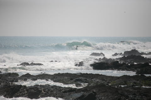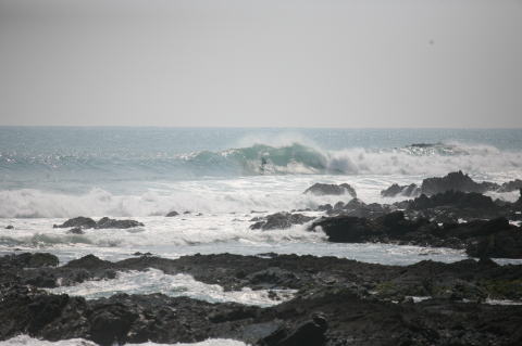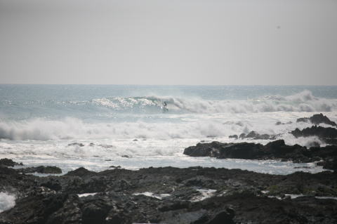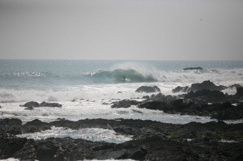 | RAMMASUN (Typhoon#02) The first typhoon swell of this year! I was really excited in anticipation of surfing big south swell. Unfortunately, it was really windy and I had to wait the wind calm down a bit. The swell were eventually shifted easterly so I headed to my favorite east swell reef to check it out. It was really big and looked pretty good. Not much wind, neither! At the chekout point, I happen to met this surfer, Munetoyo-san. I was happy to see him there on the good day because I had always been surfing there by myself everytime and I was not sure if this point is really a surfspot or not. He was alone and excited what he found here. So we chatted a bit and gone out. Although wave looked good, it was really hard to catch waves. 7-8 waves on single set and there was no chance you can get into waves from normal lineup. You had to be careful or could be slammed by rocks under the rips. By the middle of session, it was almost closing out the channel. It was the first time I was scared by at this surf spot. Munetoyo-san looked relaxed and managed to catch some on his thin 7'4". He became my hero this day! I only caught one wave and silpped off on the bottom and slammed pretty good. I was shamed... He is a pro surfer but still maintains the soul of surfer which is supposed to be kinda tough., I guess. After this session, we drived around and looked for more secret spot. At one place we drive down up to end of road and climbed down the hilly jungle to get to a lonly beach where not many people ever been to...Did we find new waves?? You guess it... Next day, the swell dropped a lot but some clean swell were left. I checked out another reef and it was as good as it gets! Special thanks to Munetoyo-san, you da best!! |