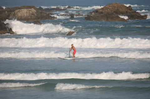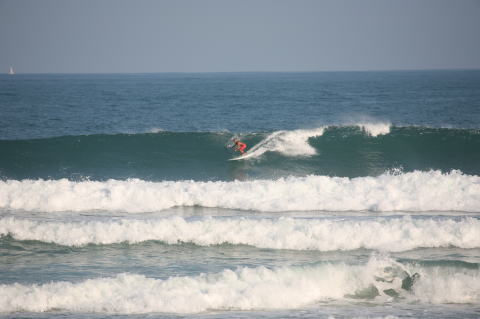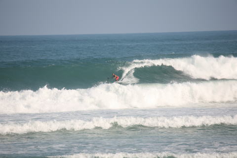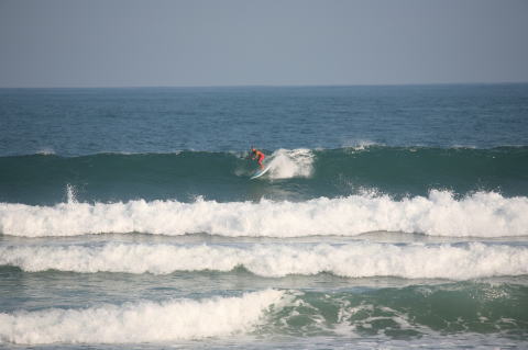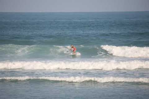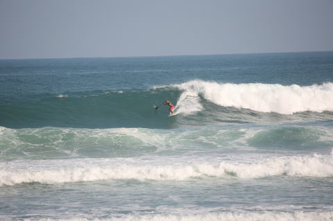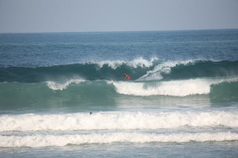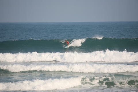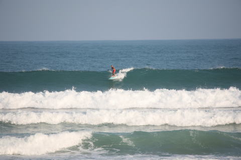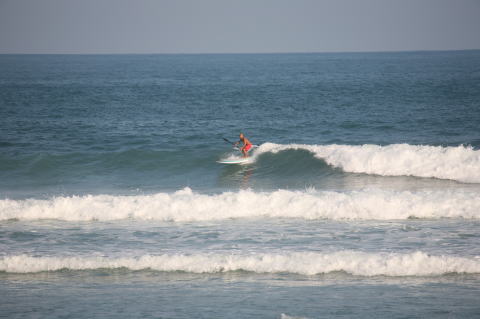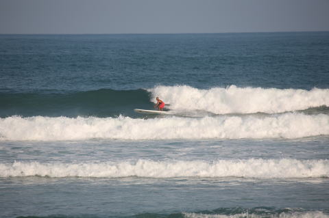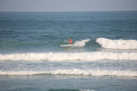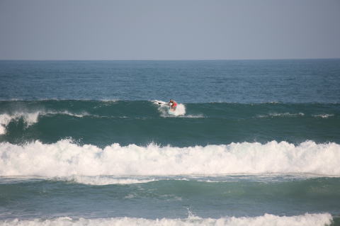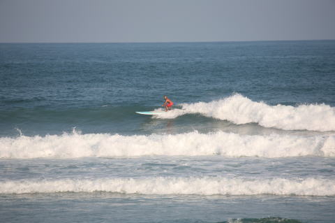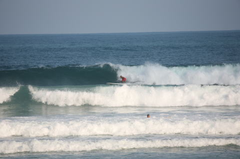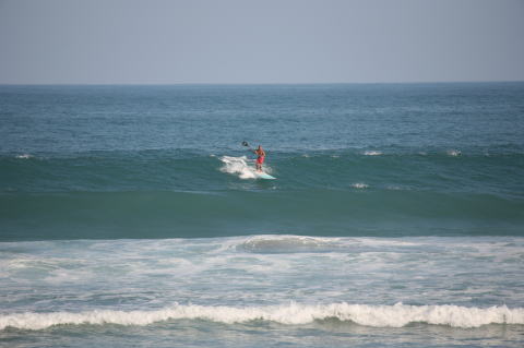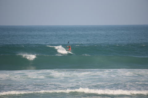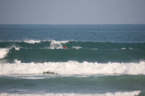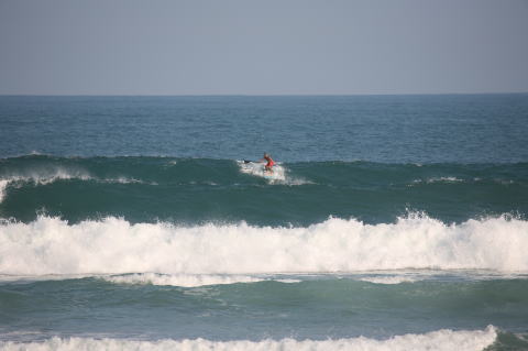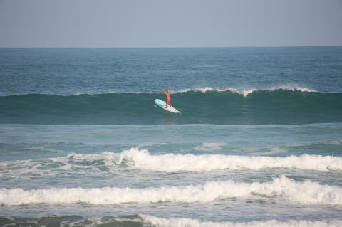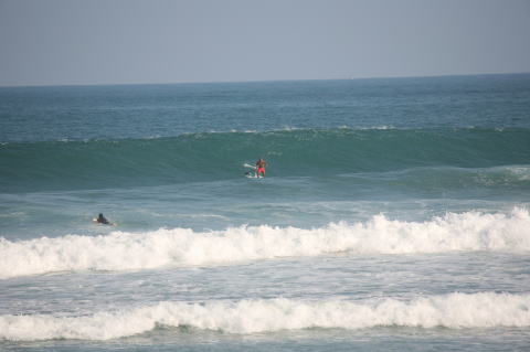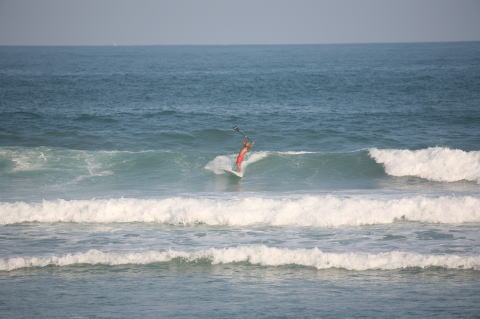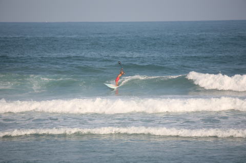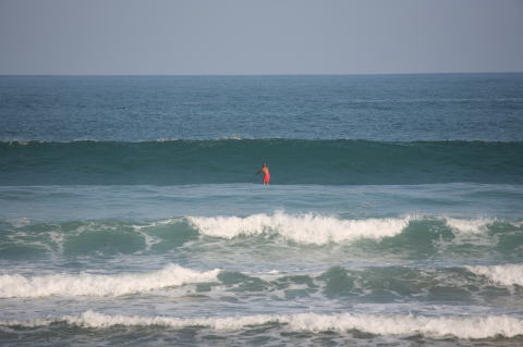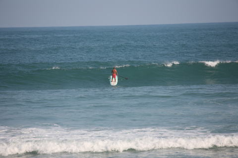 | BAVI (Typhoon#18), October 20, 2008 We had loooong flat spell all this summer long. I survived through it by practicing standup paddle board and try to catch some small waves...I was almost thinking summer/typhoon season was over. Then, without any expectations, this small, barely becoming typhoon sent some good swell. So I took my paddle board out and had a blast! |