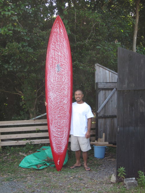 櫛本シェイプ 8’4”シングルフィン@ミクロネシア。