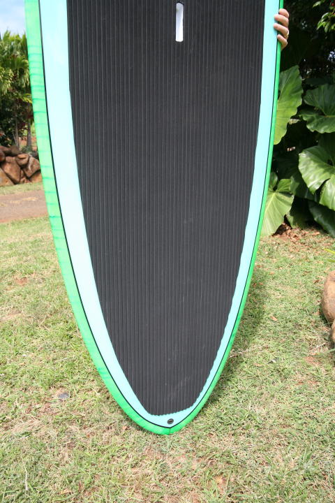 長さは8’11”と短いながらも、32インチの超ワイド幅を持たせたラウンドノーズSUP。