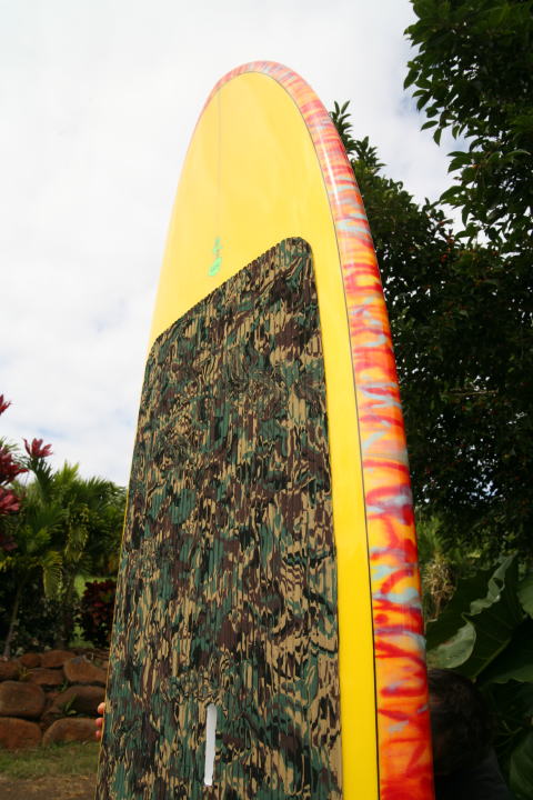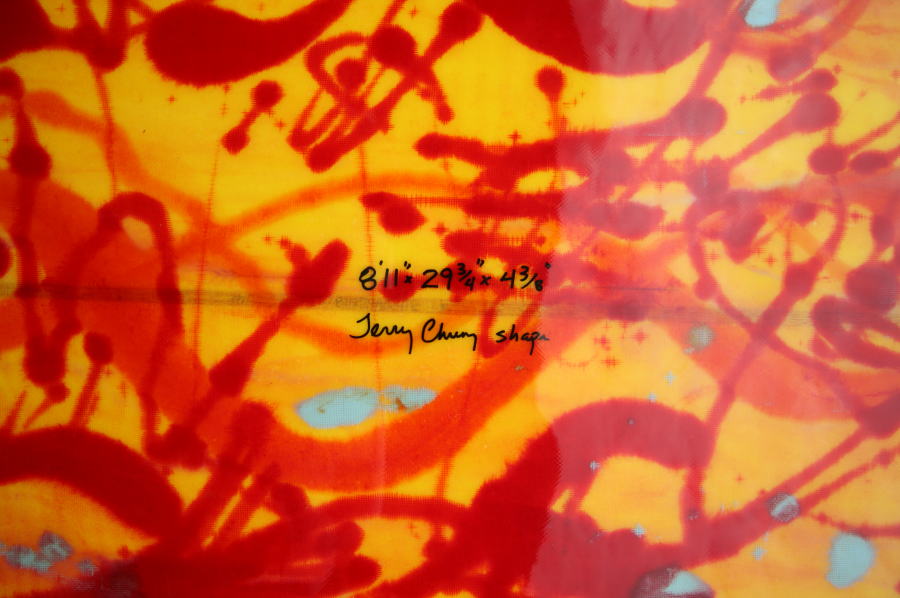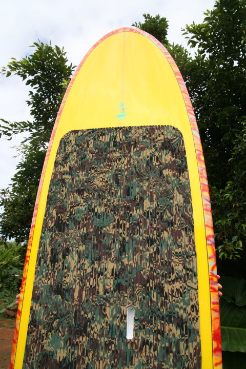 このボードは、テリーチャン自身がハンドシェープしたカスタムSUPボードです。