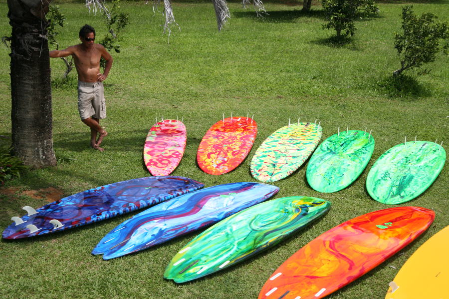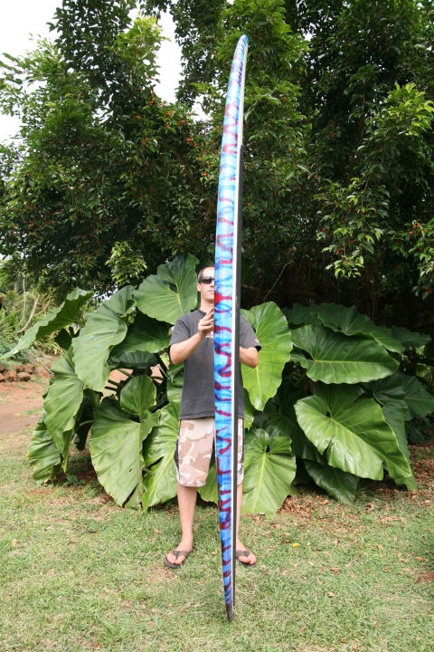 このボードは、テリーチャン自身がハンドシェープしたカスタムSUPボードです。