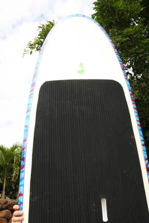 長さは8’11”と短いながらも、29 1/2インチのワイド幅を持たせたラウンドノーズSUP。